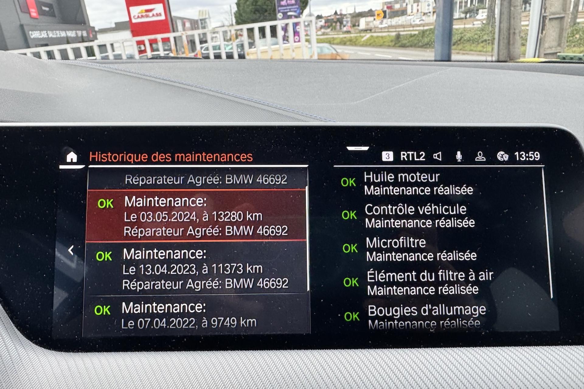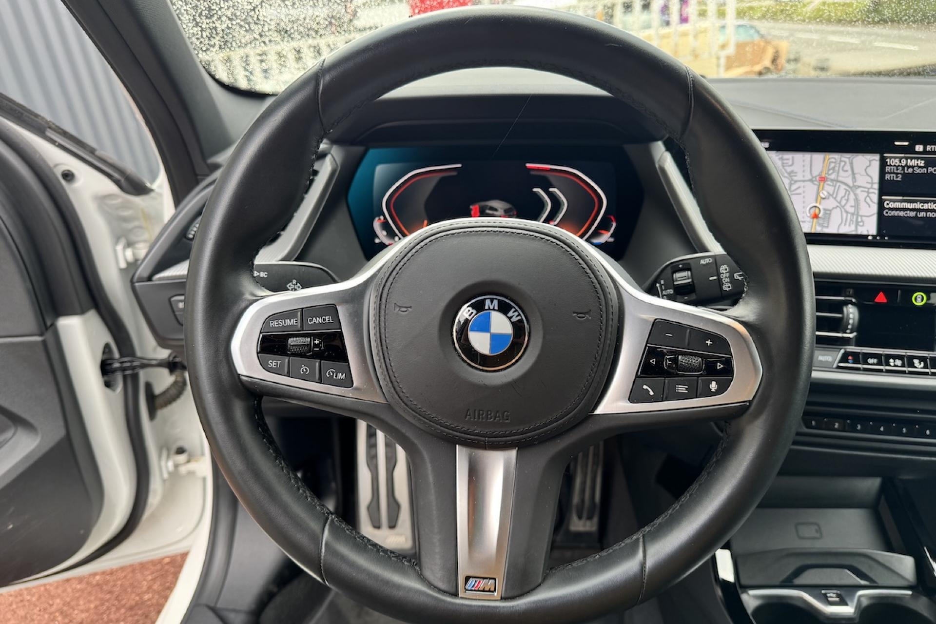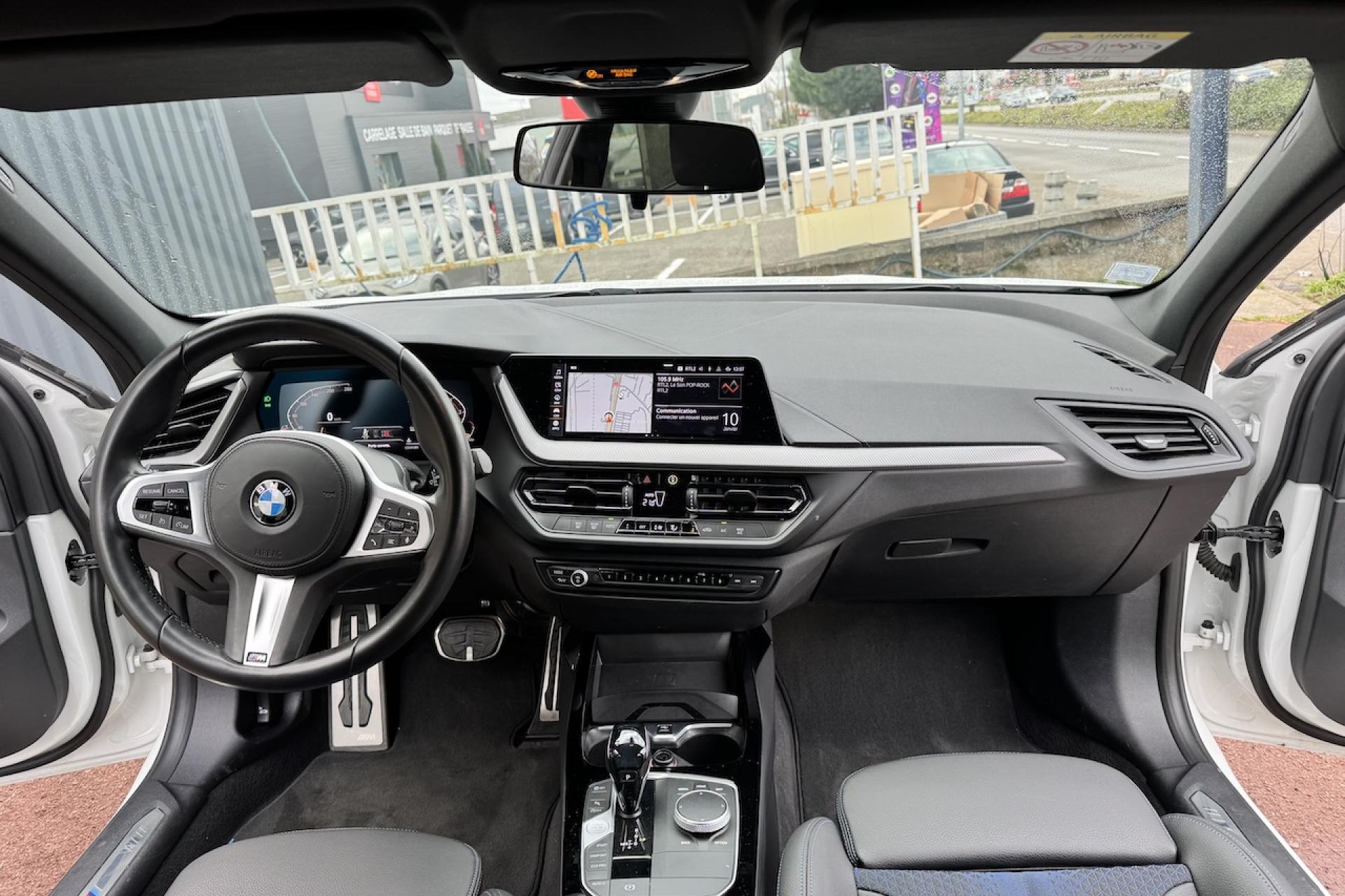 BMW Live Cockpit Navigation ProBoîte steptronicCiel de pavillon anthraciteClimatisation automatiqueDémarrage sans cléDétecteur de pluie et allumage automatique des projecteursDirection DirectDrive MFeux de jour à LEDJantes alliage 18" style 819 M bicoloresKit aérodynamique MPark AssistPédalier spécifique MPhares avant Full LEDRétroviseurs extérieurs rabattables électriquementSellerie Tissu/Similicuir Sensatec SchwarzTapis de sol en velours M spécifiquesTeinte de carrosserie "Alpinweiss" unieTuner DAB