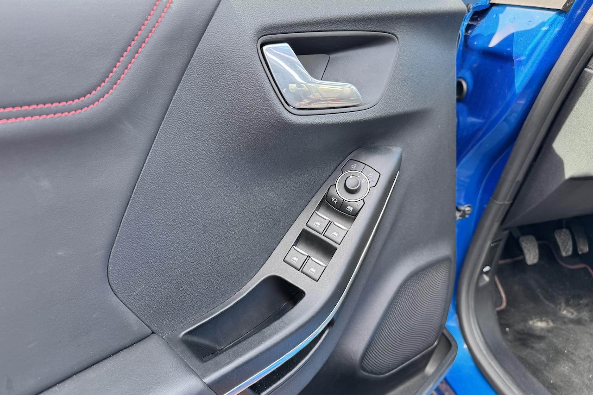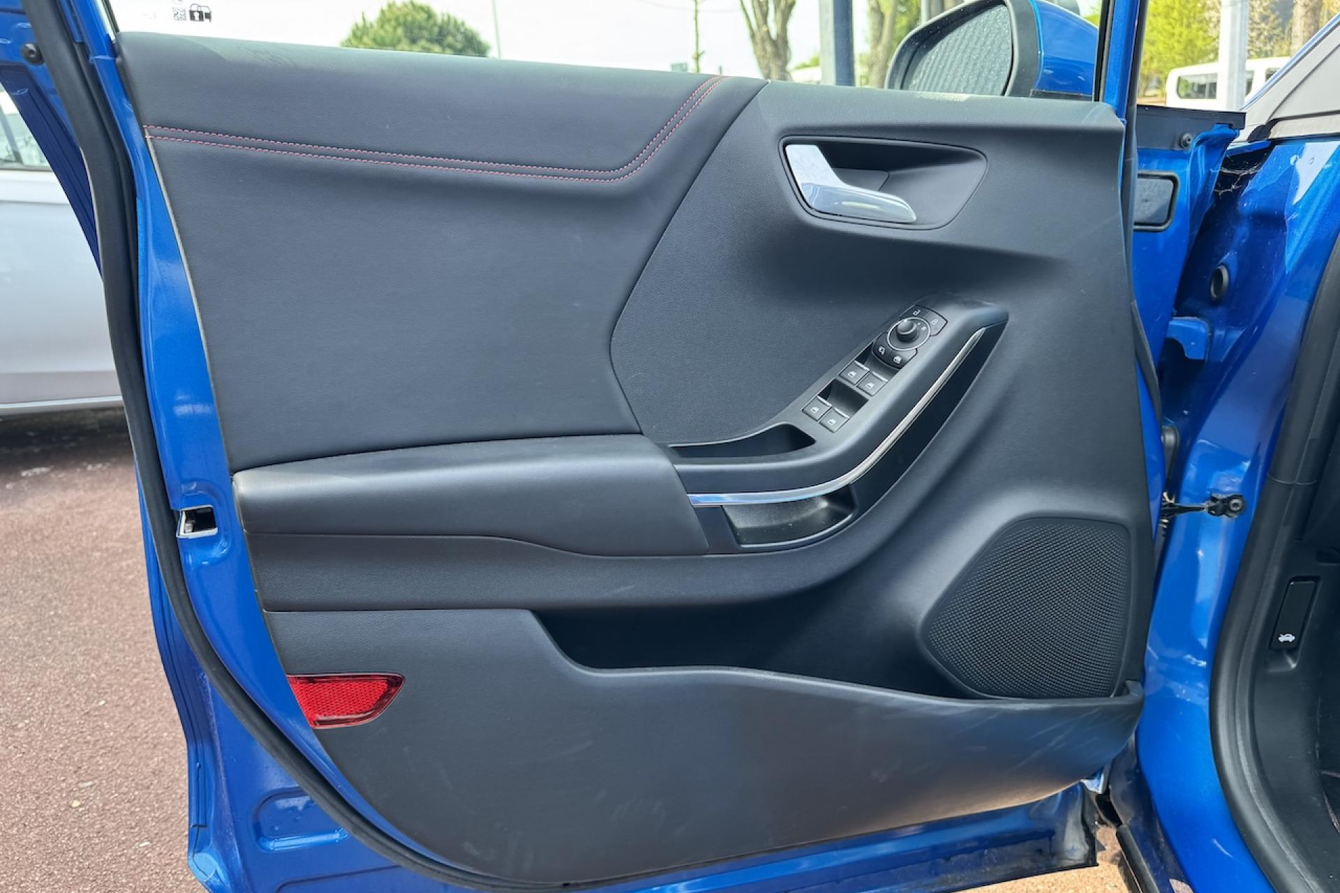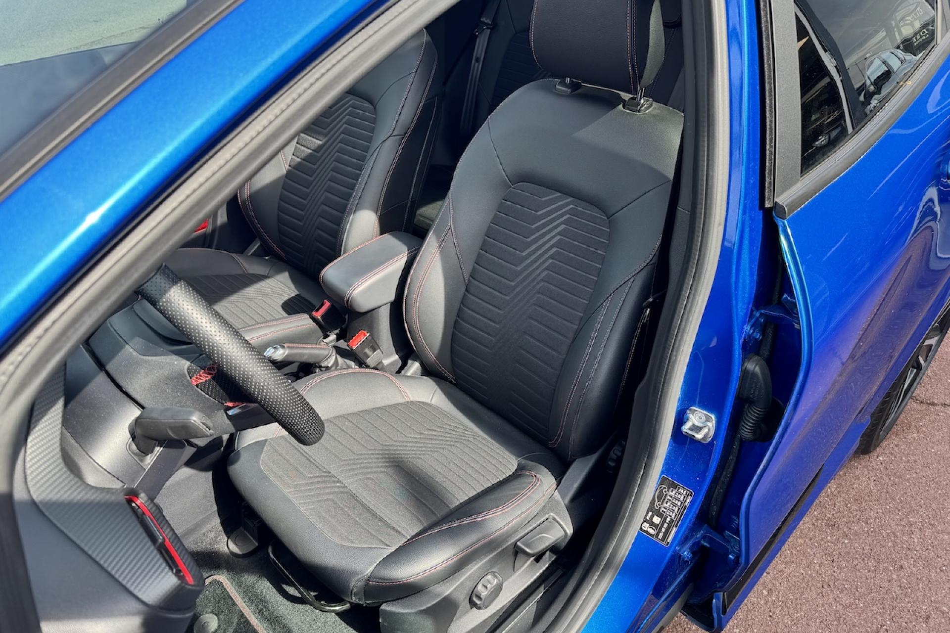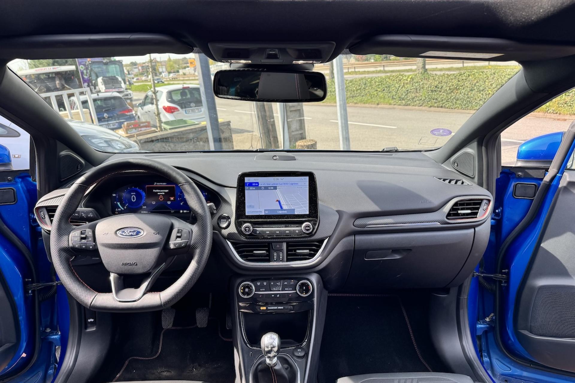 Aide au démarrage en côteAide au stationnement arrièreAlerte de franchissement Involontaire de ligneAllumage automatique des projecteursBadges ST-LineBouton de démarrage "Ford Power"Combiné d'instrumentation numérique 12,3" avec EcomodeFeux de jour à LEDFeux de route intelligents (passage feux de croisement/route automatique)Pack ConfortPlanche de bord en cuirSellerie Mixte noire tissu Sensico Tire on Eton avec renforts latéraux SalernoSystème audio B&O avec SYNC3 avec écran tactile 8", commandes vocales, 2 ports USB, Apple CarPlay et Android auto, 10 haut-parleursSystème de Navigation Europe et points d'intérêt MichelinSystème MyKey (seconde clé programmable)Vitres arrière surteintéesVitres électriques avant et arrière avec descente et remontée à impulsionVolant à méplat 3 branches ST-Line avec surpiqûres rouges