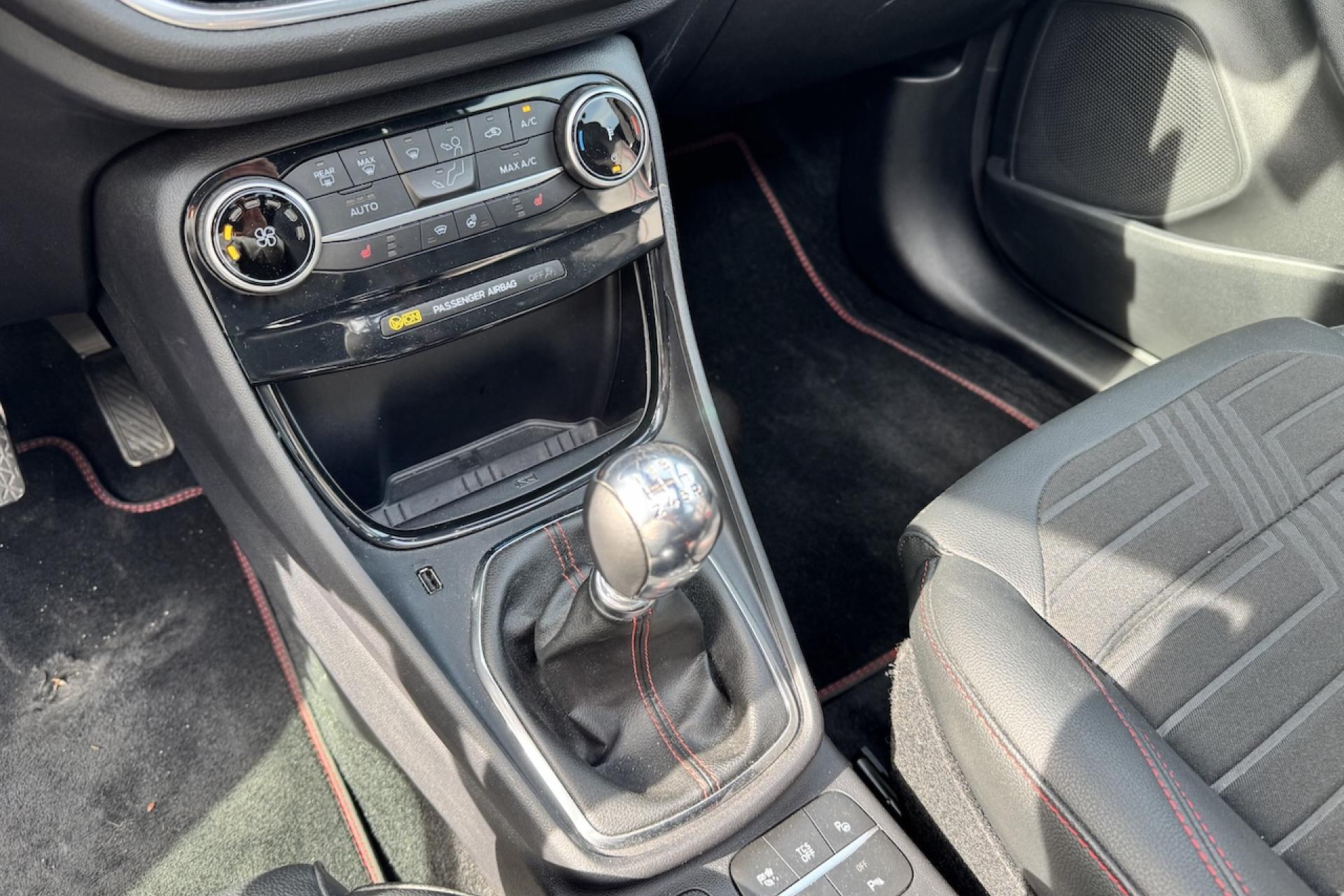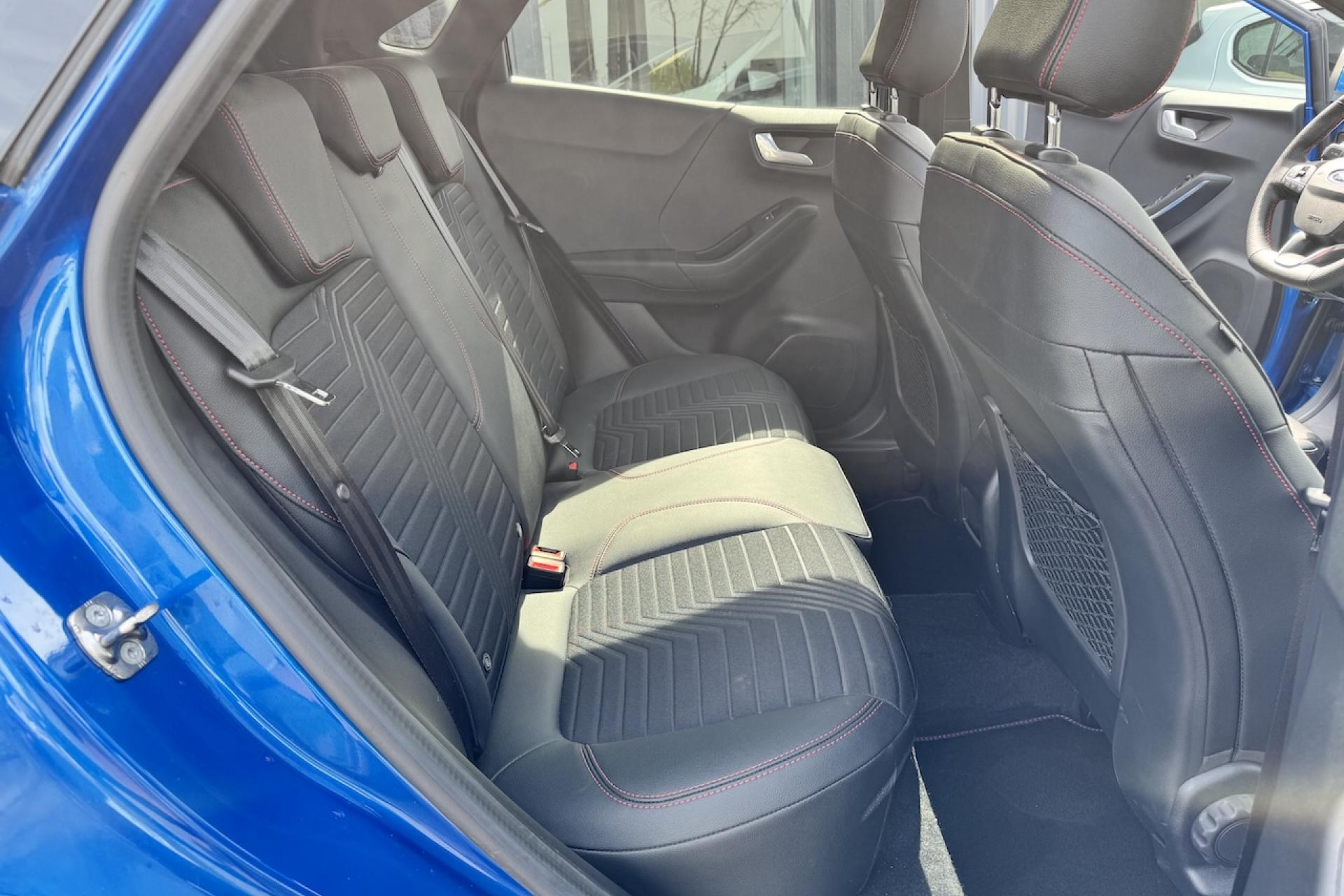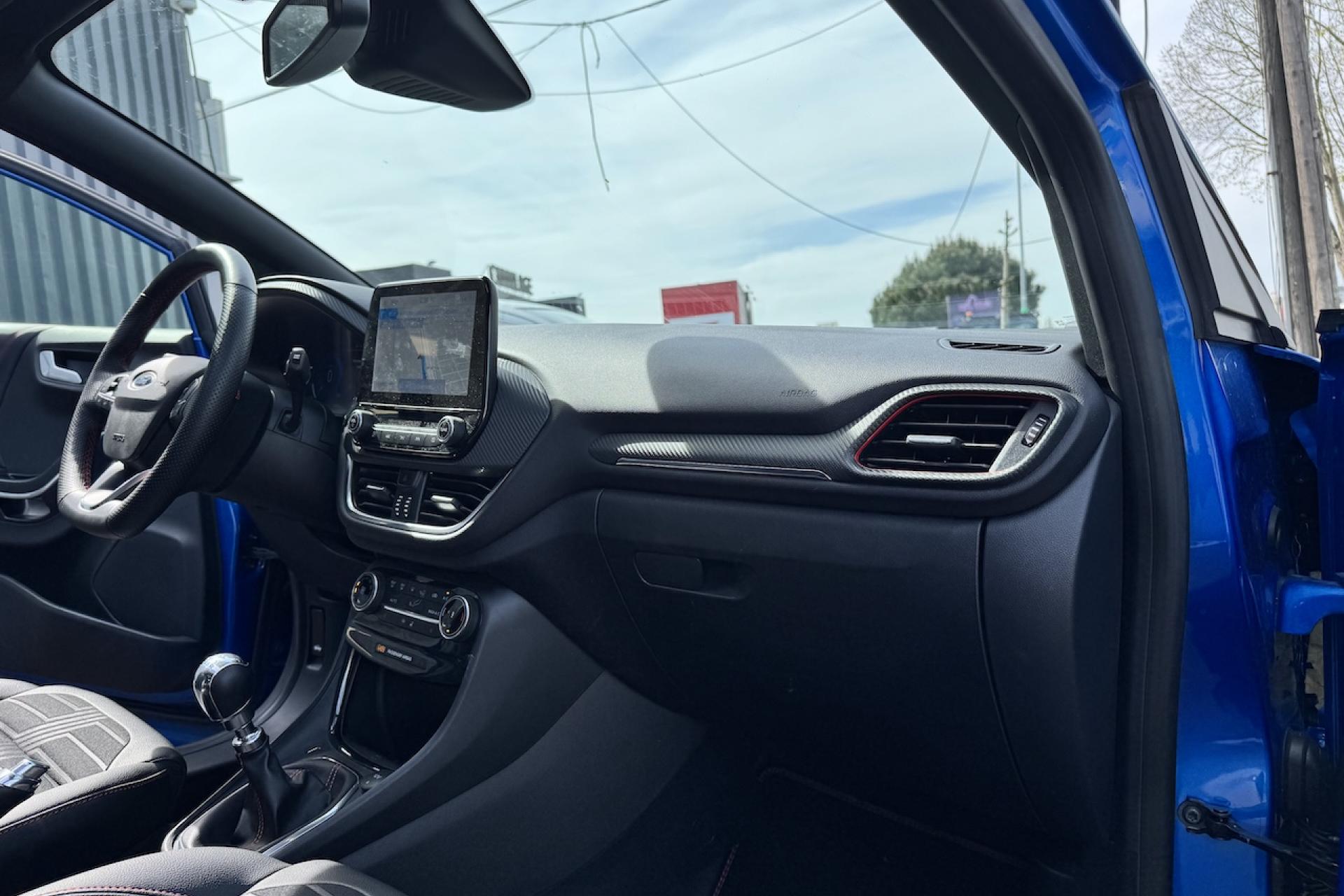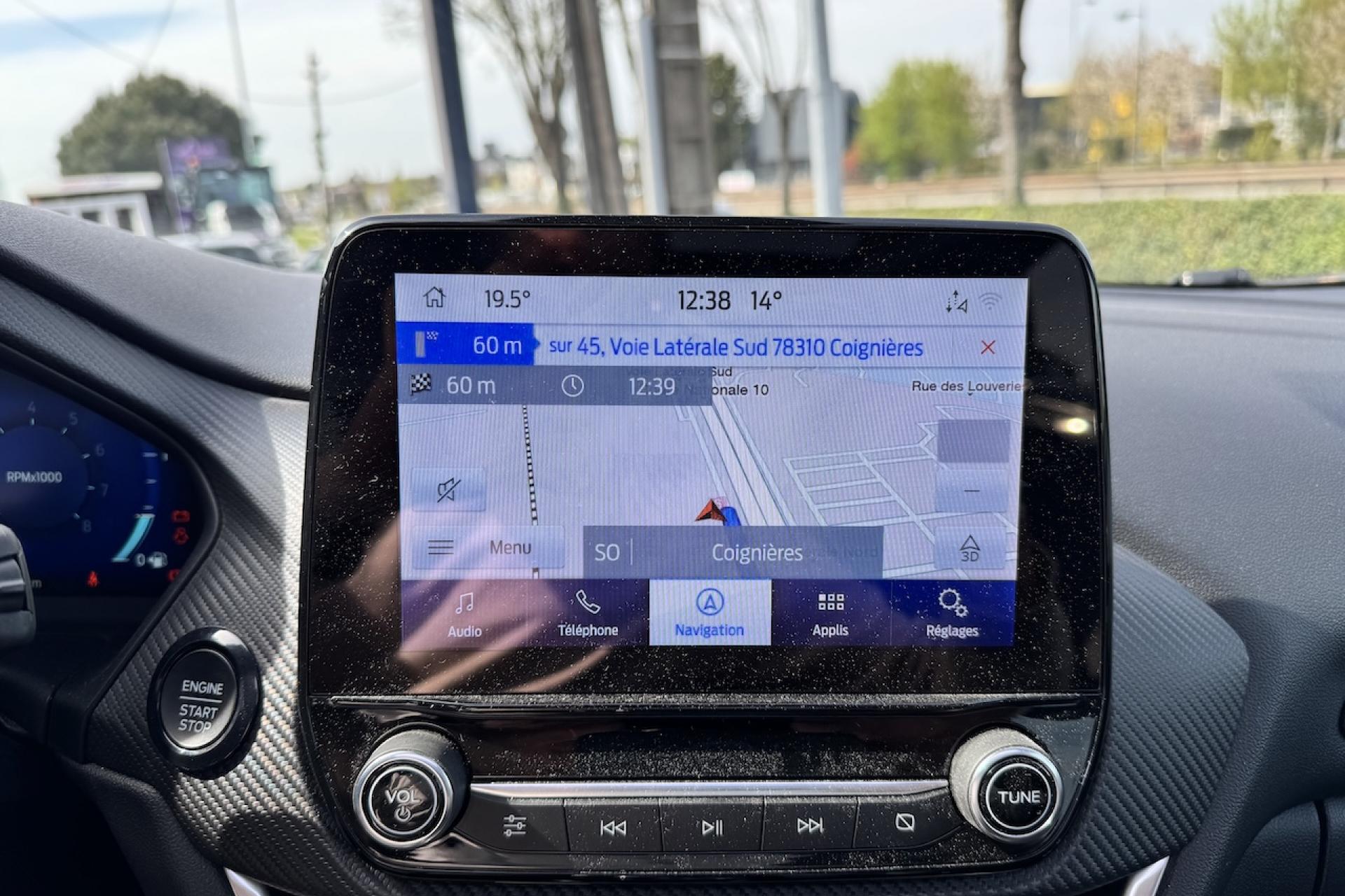 Aide au démarrage en côteAide au stationnement arrièreAlerte de franchissement Involontaire de ligneAllumage automatique des projecteursBadges ST-LineBouton de démarrage "Ford Power"Combiné d'instrumentation numérique 12,3" avec EcomodeFeux de jour à LEDFeux de route intelligents (passage feux de croisement/route automatique)Pack ConfortPlanche de bord en cuirSellerie Mixte noire tissu Sensico Tire on Eton avec renforts latéraux SalernoSystème audio B&O avec SYNC3 avec écran tactile 8", commandes vocales, 2 ports USB, Apple CarPlay et Android auto, 10 haut-parleursSystème de Navigation Europe et points d'intérêt MichelinSystème MyKey (seconde clé programmable)Vitres arrière surteintéesVitres électriques avant et arrière avec descente et remontée à impulsionVolant à méplat 3 branches ST-Line avec surpiqûres rouges