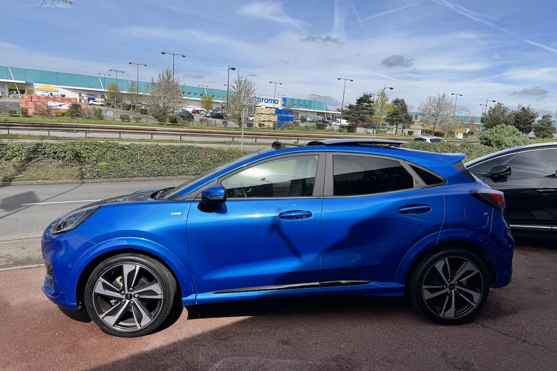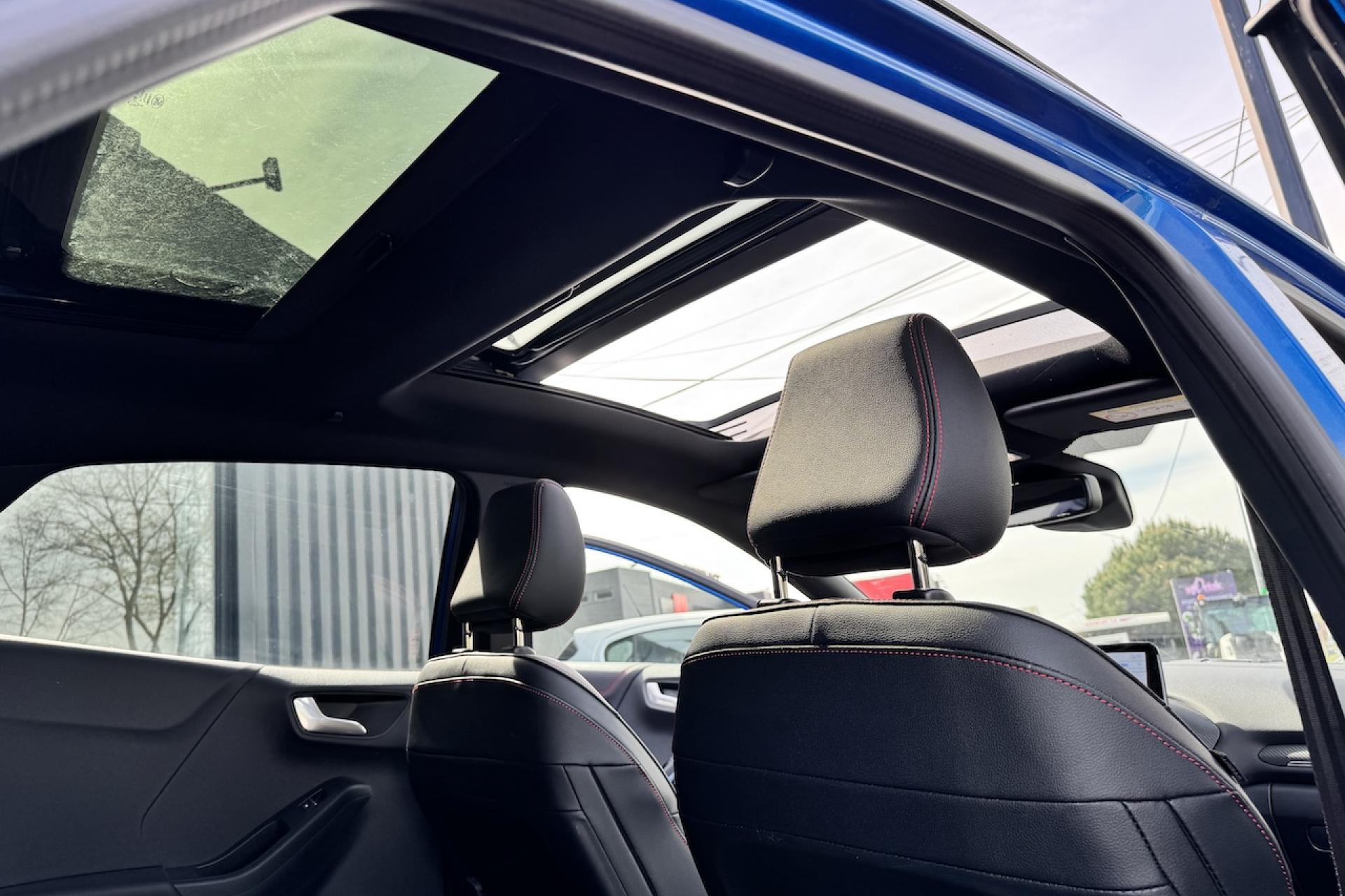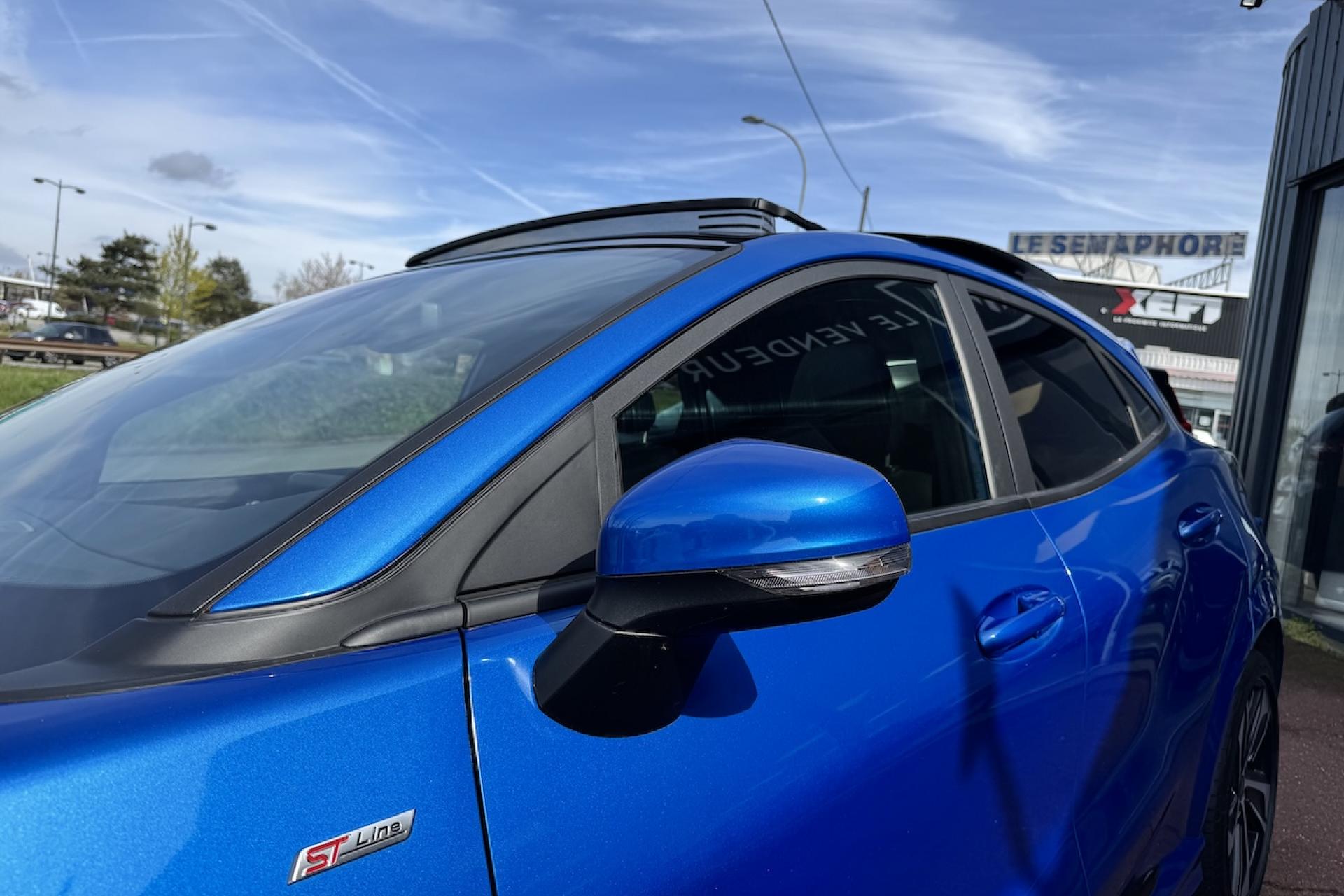 Ecrous antivol Hayon électrique mains libres avec KeyFree et bouton Ford... Pack Design Sport Pack Extérieur Noir Pack Hiver Peinture métallisée Fashion Bleu Island Phares Full LED Fixes avec masque de phare de couleur noire Toit panoramique ouvrant