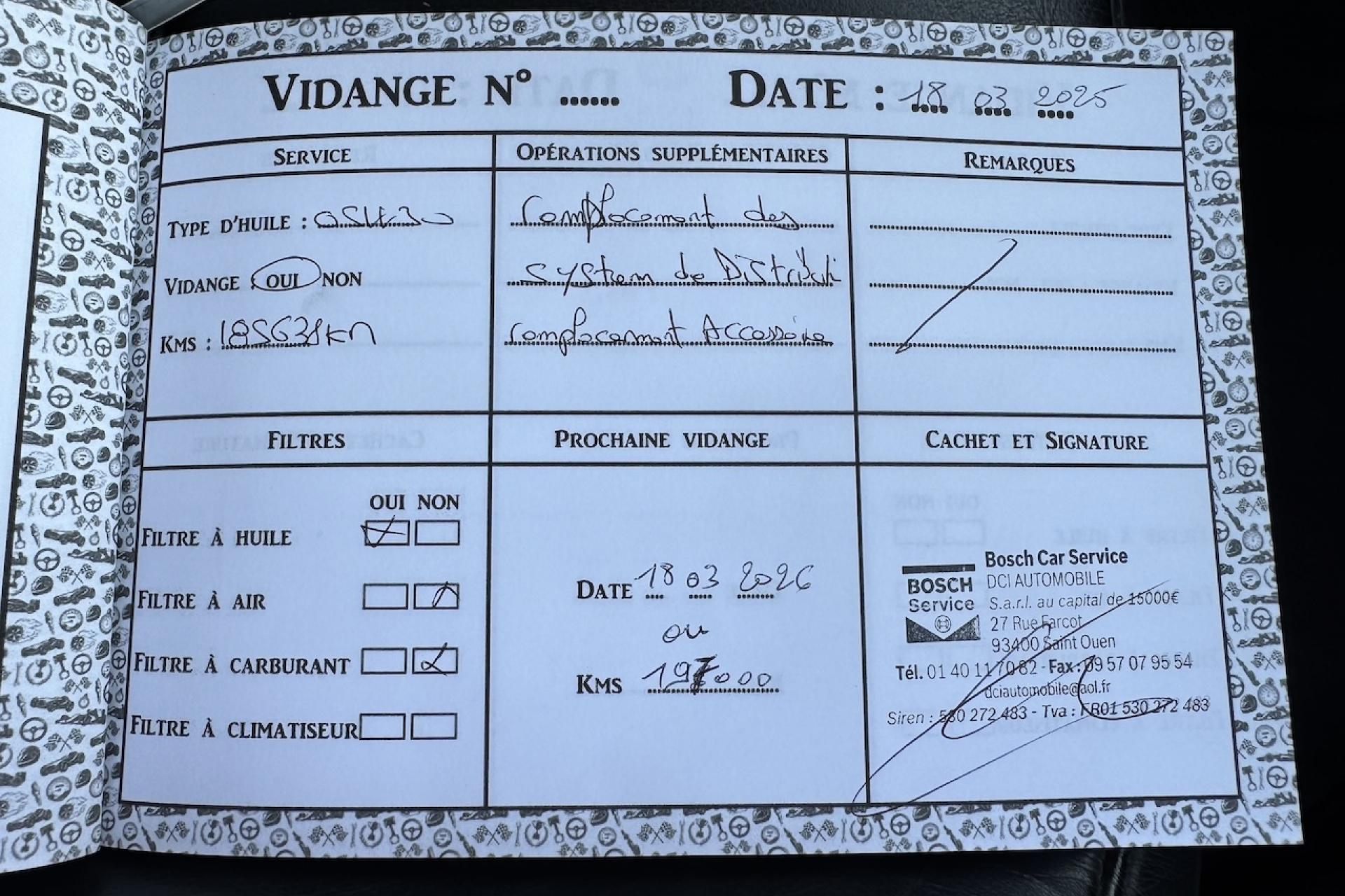 Historique d'entretien