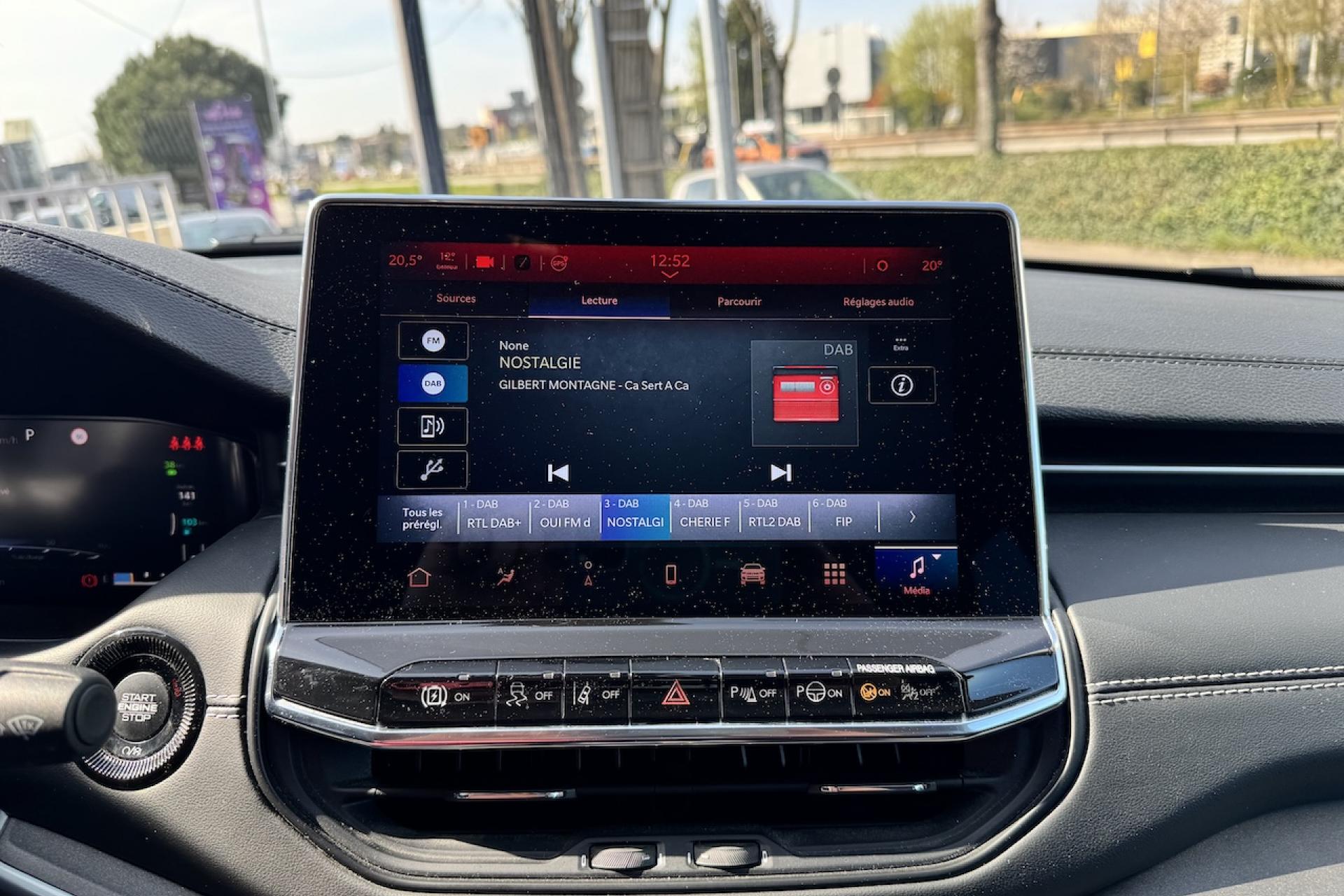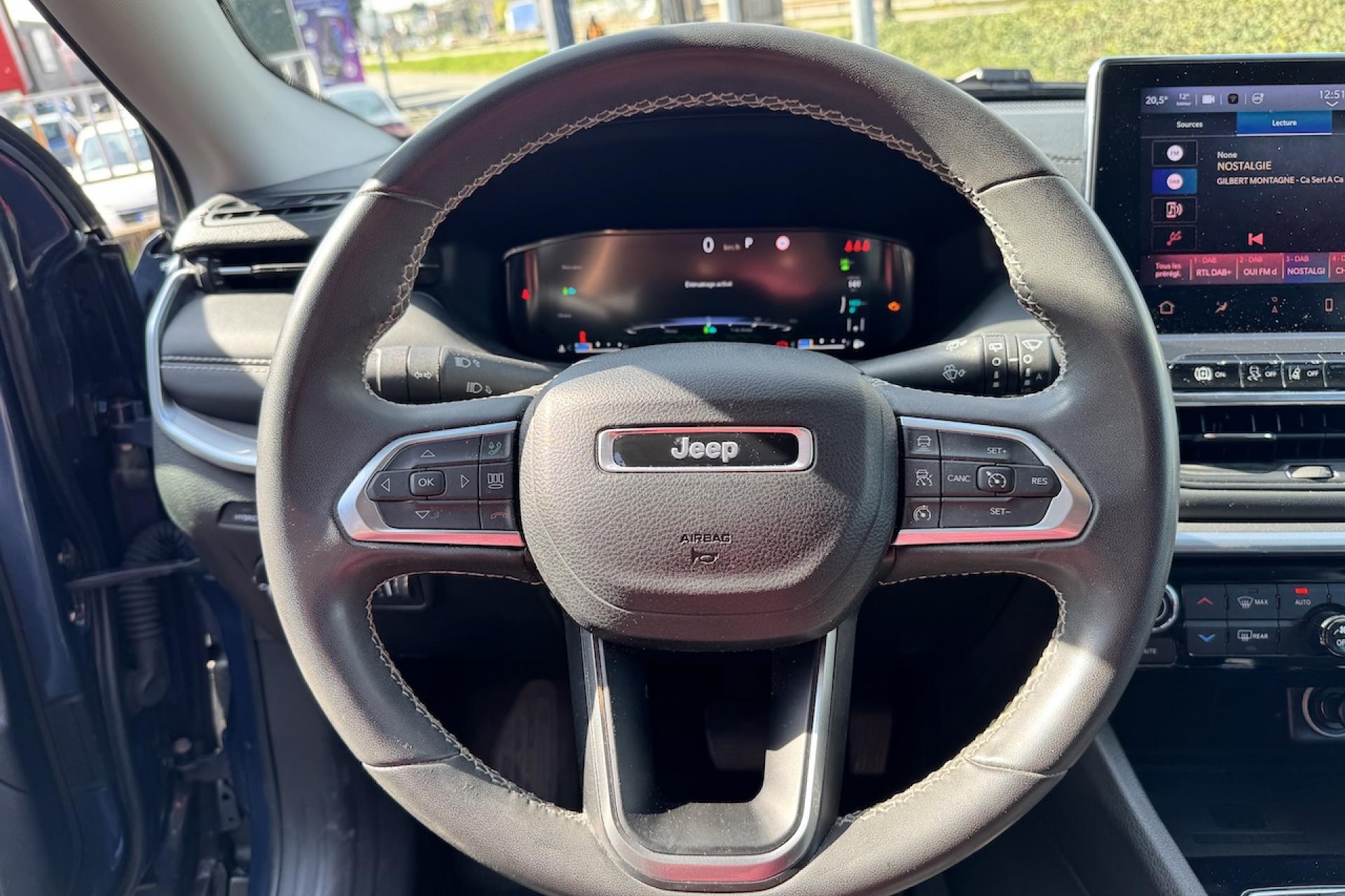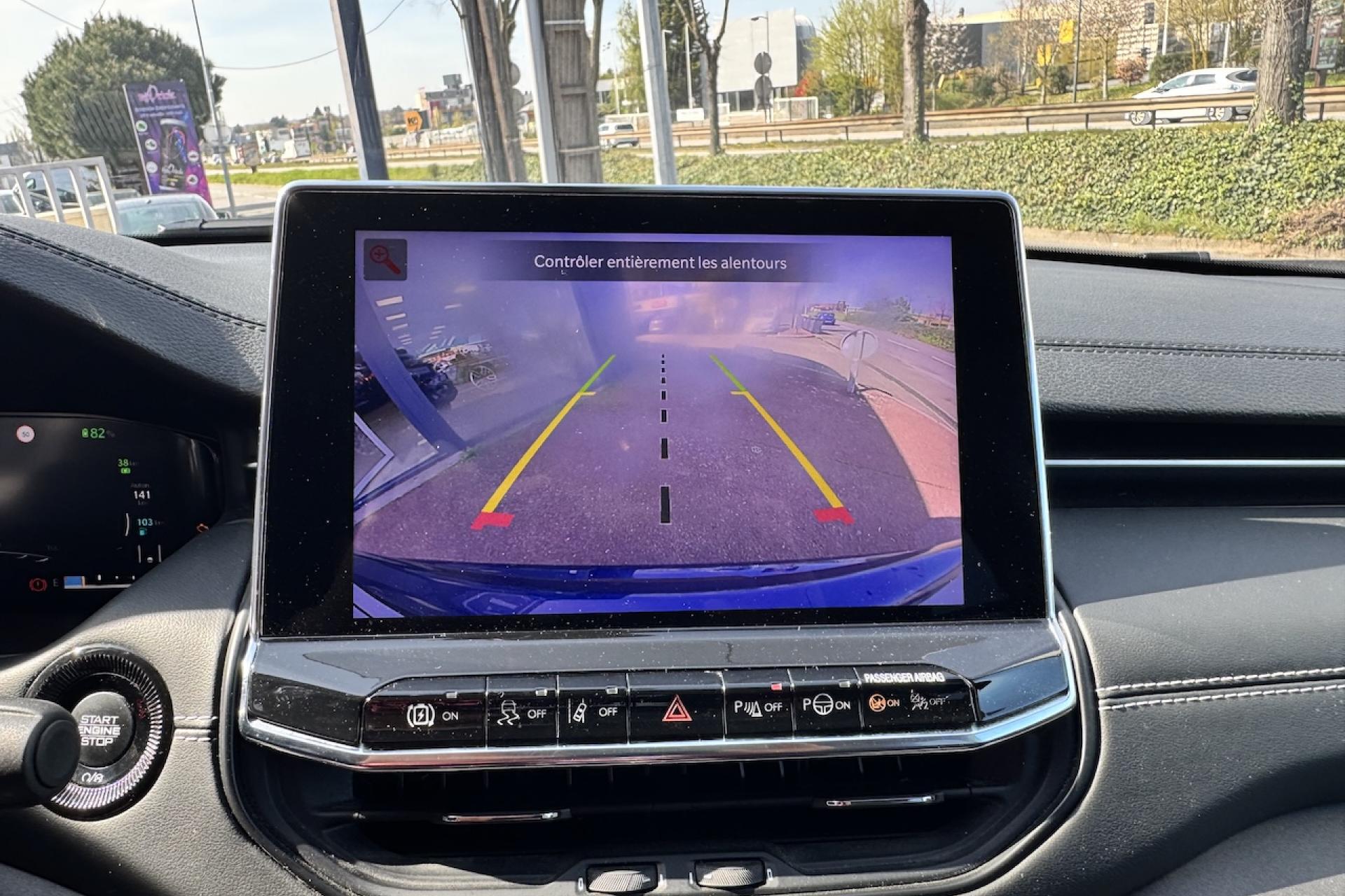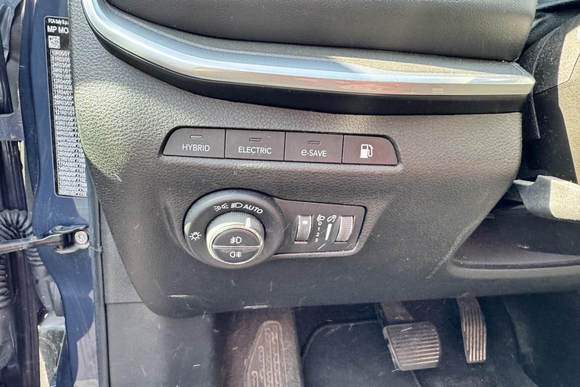 Aide au stationnement avantApple CarPlay / Google Android AutoBanquette arrière fractionnée 60/40 rabattable à platBarres de toit longitudinalesCâble type 2 mode 2 : recharge domestiqueCaméra de recul Parkview avec affichage dynamiqueChargeur sans fil pour SmartphoneClimatisation automatique bi-zone avec pré-conditionnementCombiné d'instrumentation numérique configurable à écran TFT 10,25"Commandes audio au volantEnter-N-Go : système d'ouverture et de démarrage sans cléFeux LED avec signature spécifiqueJantes en alliage 17" 235/60 R17 Pneumatiques 3 saisonsModes EV : Hybride, Electrique, eSavePack FonctionnalitéPrise de courant auxiliaire 230V, prise USB type A et CPrises 12V à l'arrière et dans le coffreRadars de reculRadio Numérique DABRégulateur de vitesse adaptatif avec fonction Stop & GoSellerie mixte TEP/tissuSystème d'infodivertissement "Uconnect 5" à écran tactile 10,1"Système de reconnaissance des panneaux de signalisationTapis de solTransmission intégrale eAWD avec Selec-Terrain et mode Sport