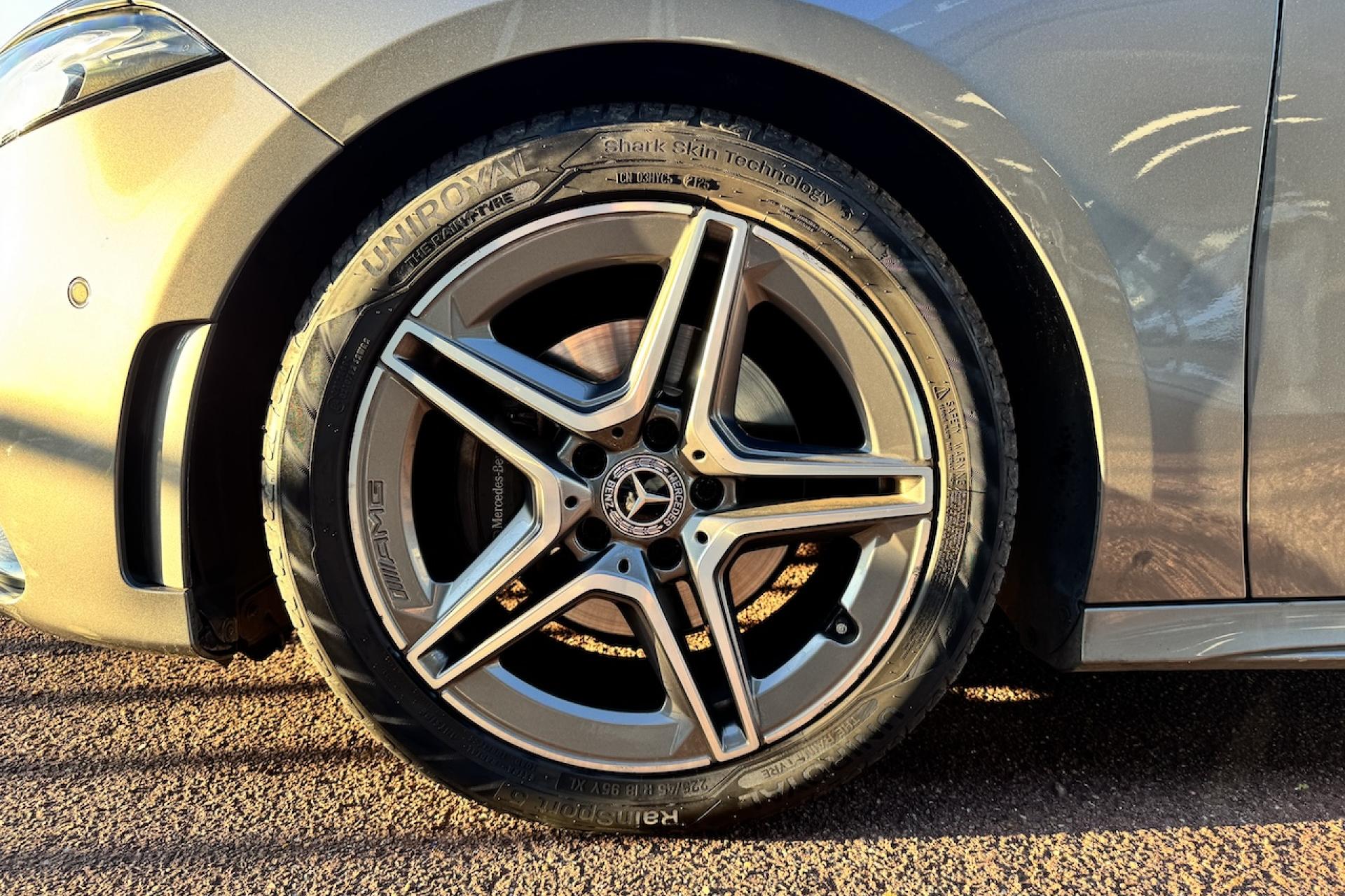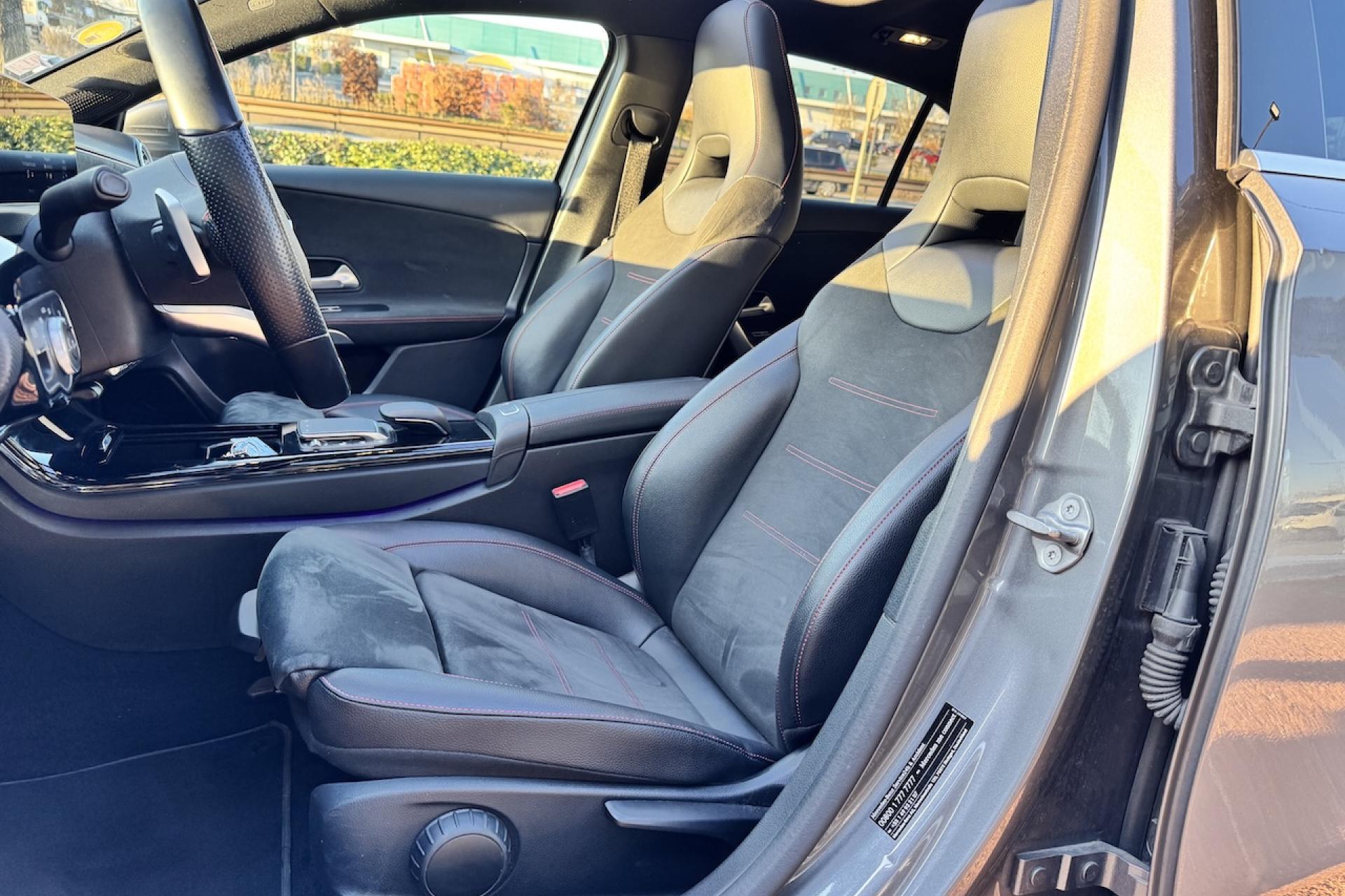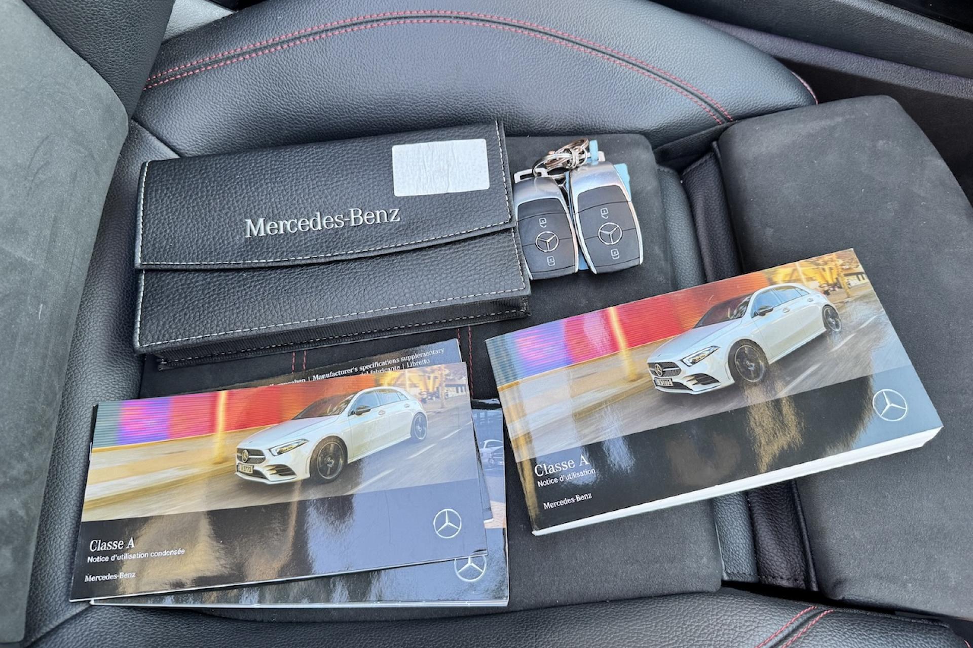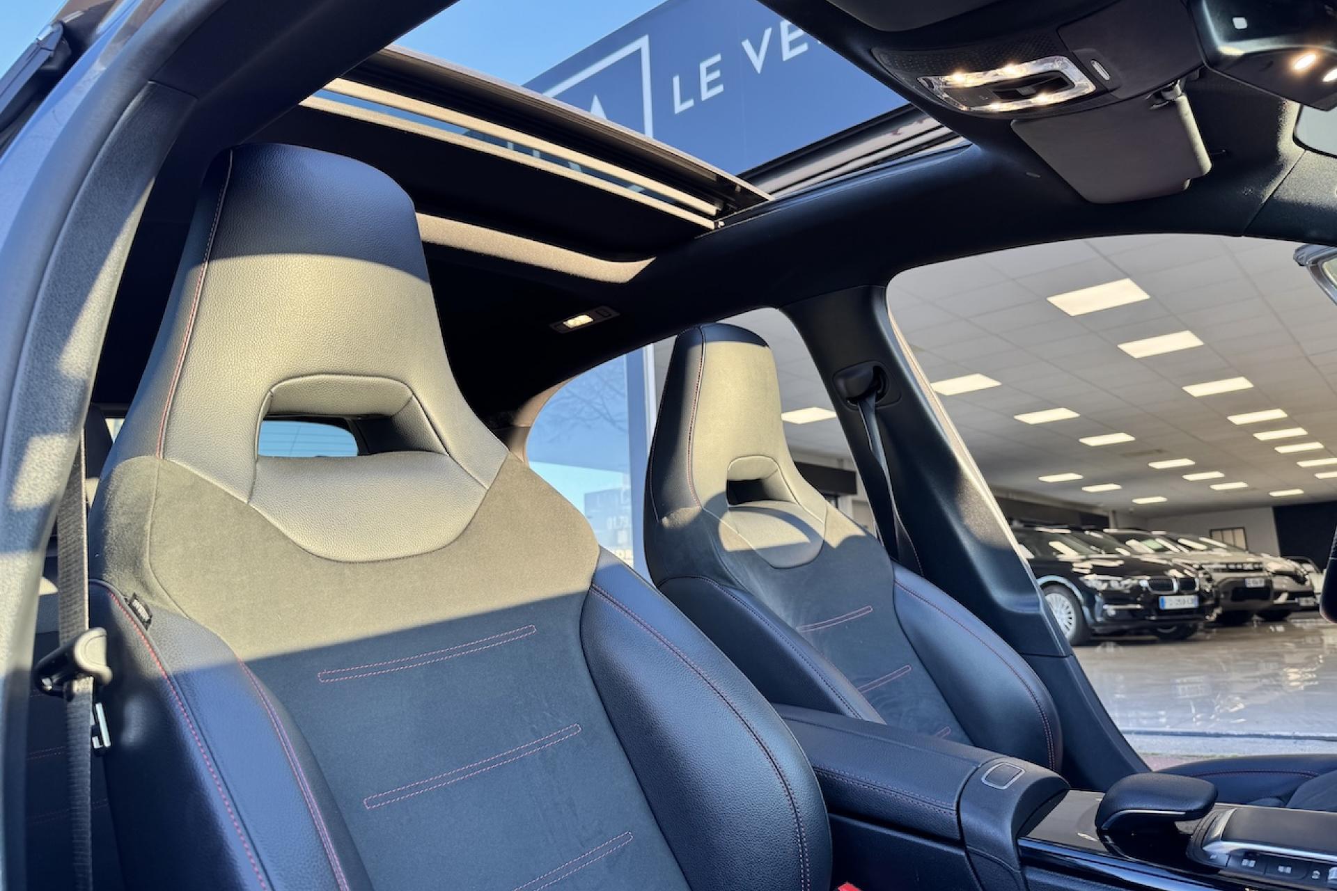 Avertisseur de franchissement de ligne actifBoîte de vitesses à double embrayage 7G-DCTCaméra de recul avec lignes de guidageClimatisation automatique THERMATIC à 1 zone avec filtre à charbons actifs contre la poussière, la suie et le pollenDYNAMIC SELECT avec les programmes de conduite « ECO », « Confort », « Sport » et « Individual »Jantes alliage AMG 45,7 cm (18'') à 5 doubles branches gris titane et argentKEYLESS-GO : système de démarrage sans cléPack visibilitéPédalier sport AMG en acier inoxydable brossé avec picots en caoutchoucProjecteurs hautes performances à technologie LEDReconnaissance des panneaux de limitation de vitesseSièges intégraux sportSystème de commande vocale et assistant personnel activable grâce à "Hey Mercedes"Système multimédia MBUX avec fonctionnalités élargies (profils personnalisés, fonctions prédictives, borne Wifi, webradio)Tapis de sol AMGTEMPOMAT (régulateur de vitesse) et SPEEDTRONIC (limiteur de vitesse)Volant sport multifonction à 3 branches en cuir Nappa, avec méplat, perforations au niveau de la zone de préhension, boutons tactiles Touch-Control, cache chromé et surpiqûres rouges
