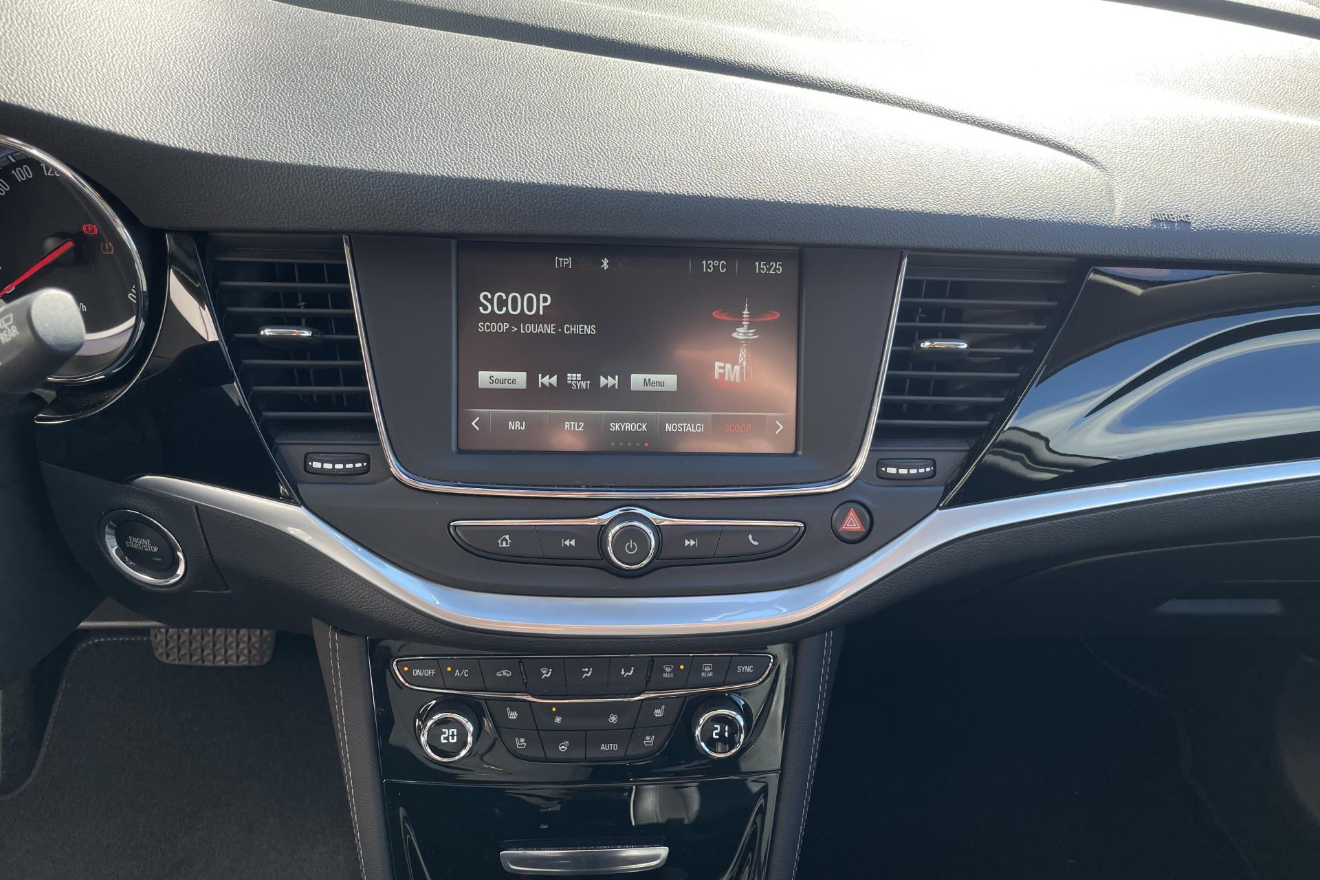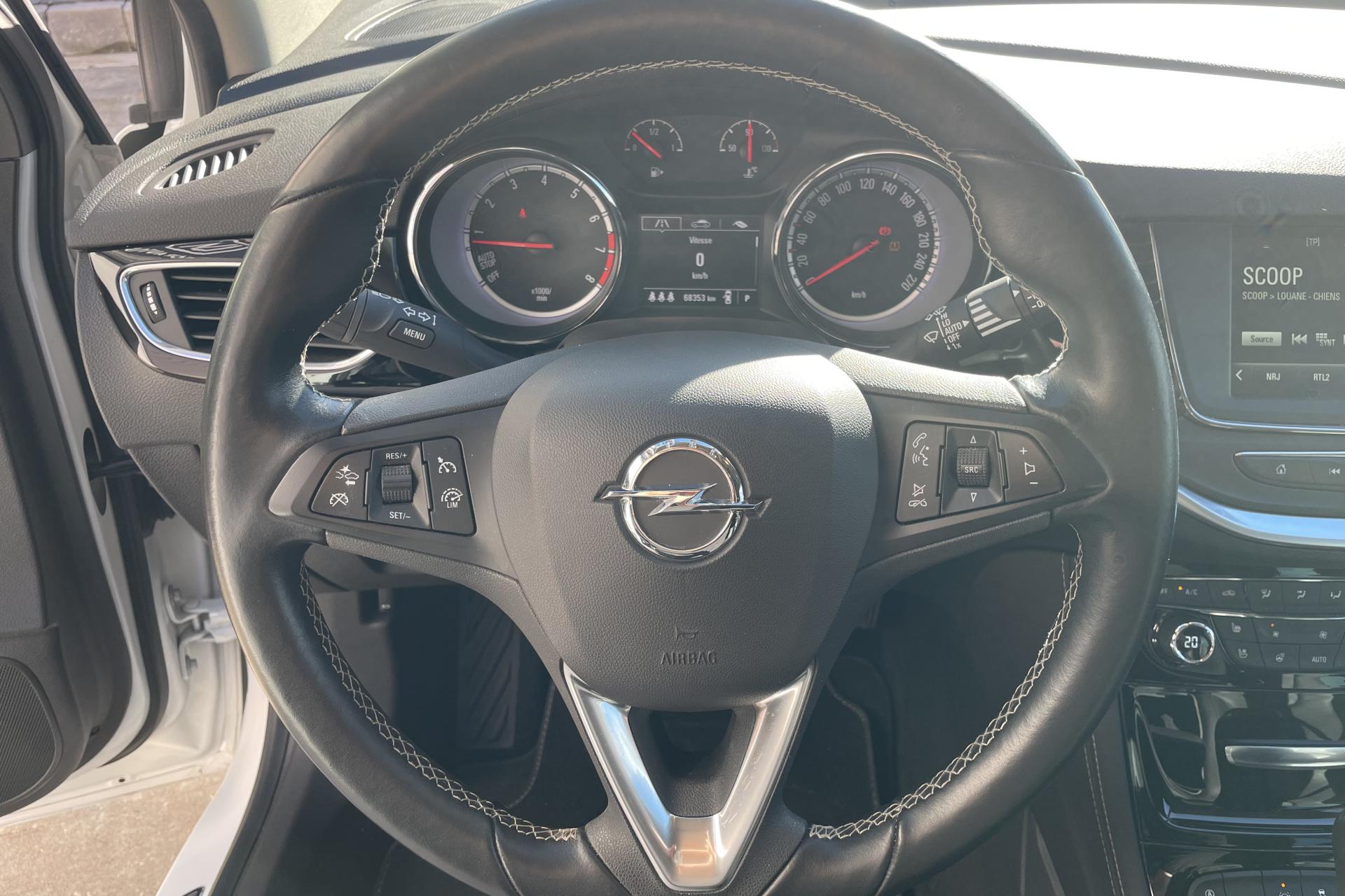 Allumage automatique des projecteursCaméra Opel EyeCapteur de pluieClef Opel mains libres et frein de parking électriqueCompteur kilométrique et totalisateur journalier à affichage digitalContrôle electronique de stabilité (ESC) intégrant le contrôle de traction (TC), le contrôle de freinage en courbe (CBC), le contrôle de couple en courbe (CTC), l'assistance au freinage d'urgence (BAS) et la compensation hydraulique de l'évFrein de parking électriqueOnStarOrdinateur de bord au centre du bloc d'instrumentation muni d'un écran digital 3.5'' TFT monochrome blanc avec affichage digital de la vitesseProjecteurs antibrouillardR4.0 IntelliLink : Ecran tactile 7'' avec radio, USB (audio et vidéo), interface iPod, Bluetooth mains libres, audio streaming et 6 haut-parleursRétroviseur intérieur électrochromeRétroviseurs extérieurs rabattables électriquementSiège conducteur réglable dans 6 directions dont réglage en hauteurSièges confortSupports lombaires à réglages électriques (4 positions) dans le siège conducteur