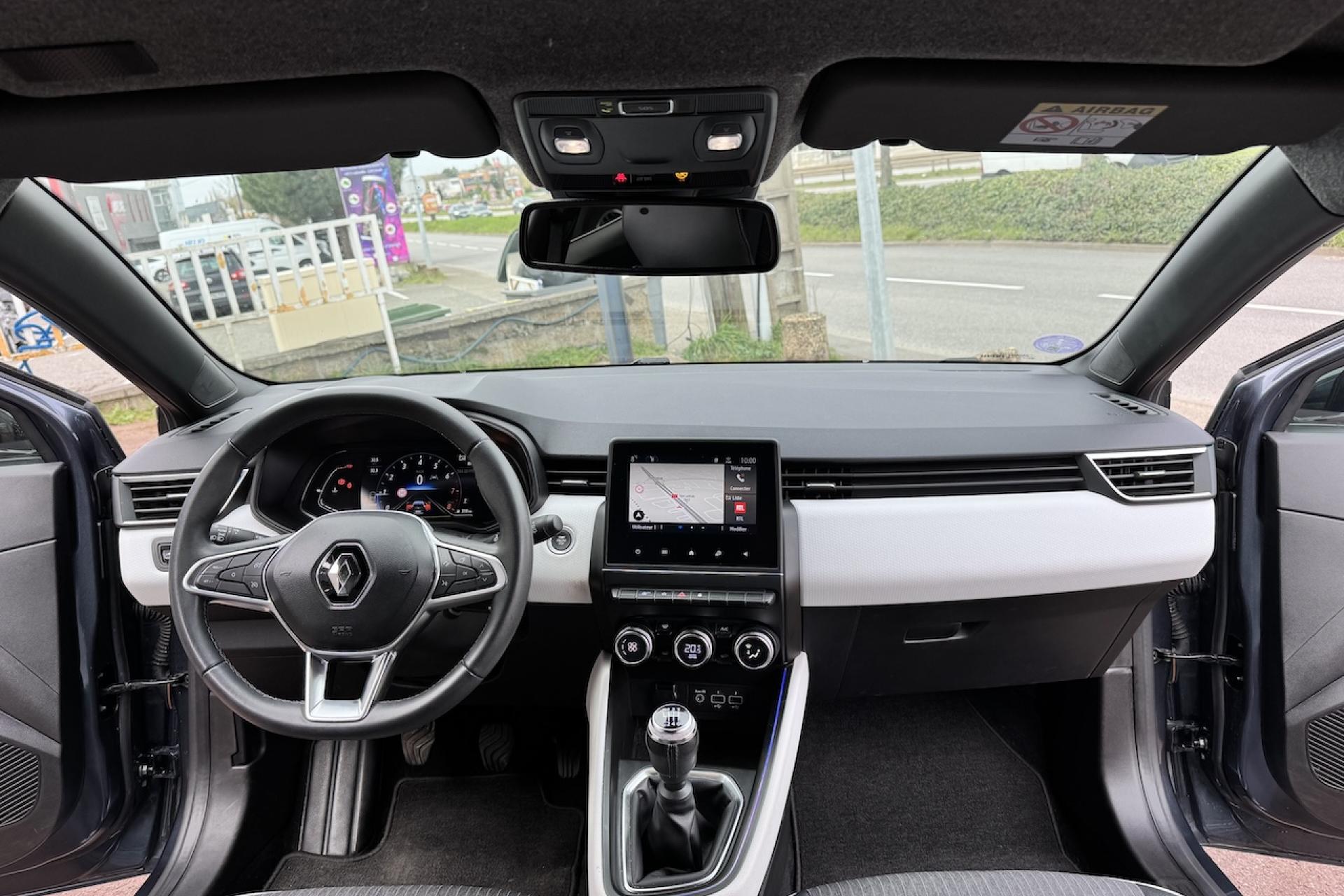 Accoudoir avant, coulissant - avec rangement ferméAide au stationnement arrièreAlerte distance de sécuritéAllumage automatique des essuie-glacesAllumage automatique des projecteursAntenne aileron de requin noireCaméra de reculCarte Renault avec accès et démarrage mains-libres avec fermeture à l’éloignementClimatisation automatiqueEcran tactile multimédia 7”Feux de jour à LED avec signature lumineuse C-ShapeJantes alliage 16" Philia Diamantées NoirNavigation connectée avec cartographie EuropePack Sécurité StandardProjecteurs avant Full Led Pure VisionRenault MULTI-SENSE, personnalisation des modes de conduites et ambiance intérieures (3 mode pré-définis: MY SENSE, ECO, SPORT)Sellerie similicuir tissu gris visionSièges avant confort (assise élargie et maintien latéral amélioré)Système multimédia Easylink avec radio DAB compatible Android Auto & Apple CarPlayVitres latérales et lunette arrière surteintées